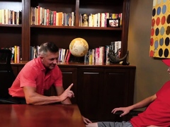 Scout gaydaddy barebacks twink in office after dildo sucking