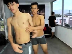 Couple raunchy Latin twinks go gay in front of camera